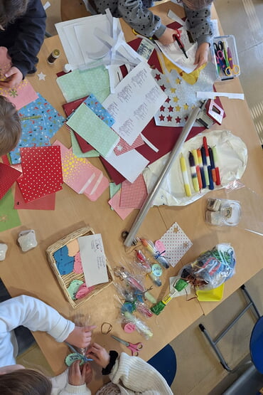 Verpacken der hergestellten Kerzen für den Weihnachtsbasar.